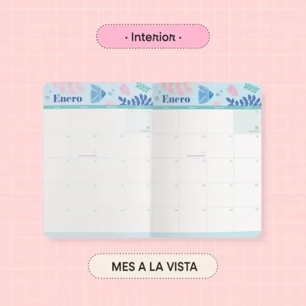 •    Planificador mensual doble página.